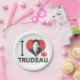 I coeur Trudeau. J'aime Justin Trudeau. Avec une feuille d'érable canadienne rouge. Ministre libéral du Canada le premier. Le visage de Justin fait comme illustration graphique et fini dans une grunge, regard affligé.