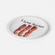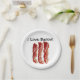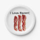 Plaques de fête en papier avec des bandes de bacon avec le texte "I Love Bacon!". Des serviettes et des tasses à papier assorties sont également disponibles dans ce magasin avec le nom "I Love Bacon Paper Napkins". Vous trouverez également les deux produits dans la collection "Bacon, Bacon, Bacon".