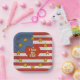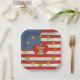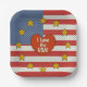 Ces Plaques de Fête en Papier robuste présentent le design patriotique délicieusement original de Leslie Sigal Javorek basé sur l'American Flag : avec alternance de rayures rouges et blanches à pois polka ; un bloc bleu à pois polka dans le coin gauche ; surmonté d'une couronne d'étoiles de couleur moutarde épicée entourant un coeur rouge brun proclamant "I Love the USA !"