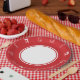 Assiettes En Carton Il s'ajoute dans une plaque de papier cerise