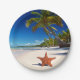 Assiettes En Carton Île tropicale de palmier de plage sablonneuse