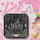 Assiettes En Carton Illustration du château de Fairytale noir et blanc