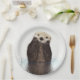 Plaques en papier avec la photo d'une loutre mignonne debout dans l'eau avec ses pattes tenant son visage. Sa tête coincée à gauche avait l'air douce et adorable.