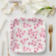 Cette assiette en papier est présentée dans une charmante impression de fleurs roses.