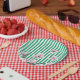 Assiettes En Carton Impression magnolia verte rayée été, printemps