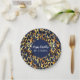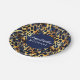 Assiettes en papier inspirées du safari avec des motifs de fourrure d'animaux en or et bleu marine.