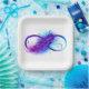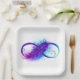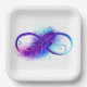 Infinity symbole with a beautiful feather painted in purple and blue bright colors on white background