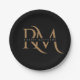 Assiettes En Carton Initiales modernes Noir et Or Élégant Monogramme