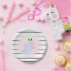 Une fête d'halloween pas éffrayante ! Pastel rose Hey Boo Iridescente Ghost Halloween Plaques de fête d'anniversaire avec arrière - plan rayé noir et blanc.