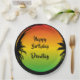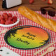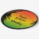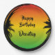 Commencez votre fête jamaïcaine avec ces assiettes colorées en rasta. L'aménagement est composé d'un arrière - plan de couleur rasta qui s'estompe et d'un grunge de palmier noir. Tout le texte est personnalisable
