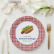 Ajoutez cette plaque de papier personnalisée à votre prochain biscuit jardin. Le design offre un grand graphisme d'un hot dog et est accentué d'une bordure rouge à carreaux. Le texte personnalisé vous permet d'ajouter votre nom et votre date.