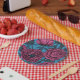 J'avais dessiné des pivoines avec de l'encre puis je les redessinais et les colorais dans Illustrator pour faire le motif.