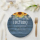 De jolies lampes à cordes et des tournesols décorent vos détails spéciaux de fête de fiançailles ensemble dans une élégante typographie sur un arrière - plan en bois rustique bleu. Conçu par Thisisnotme©