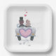 Un jeune couple marié qui s'en va en voiture après le mariage. Ce design est vraiment efficace sur ces assiettes en papier