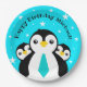 Assiettes En Carton Joli Anniversaire Garçon Pingouins Blue Neckties