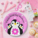 Célébrez ses premiers anniversaires avec ce design fantaisiste, qui présente d'adorables pingouins en forme d'oeuf arborant des fleurs roses sur un arrière - plan rose étoilé! Design © W.H. Sim. Voir plus sur zazzle.com/expressionsoccasions