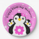 Assiettes En Carton Joli Anniversaire Pingouins Fleurs Roses