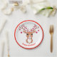 Joli cerf de Noël décoré de boules rouges sur un arrière - plan blanc avec plaque de papier cadre rouge.