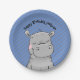 Jolie illustration hippo et texte réglable. Peut être changé pour dire "baby shower" etc. Arrière - plan rayé bleu.