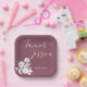 Jolie plaque de papier mariage a un bouquet floral blanc sur arrière - plan mauve muet (Hawthorn Rose - un 2022 Pantone color pick) avec des blocs de texte personnalisables blancs dans les polices modernes