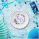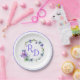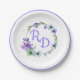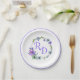 Jolie plaque de papier mariage faite en blanc, avec une couronne fleurie colorée, avec les initiales de la mariée et du marié faites en lavande et une jante de lavande, autour du bord de l'assiette. Personnalisez les initiales pour vos besoins mariages. Des produits correspondants sont disponibles.
