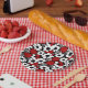 Assiettes En Carton Joli motif floral en rouge, noir et blanc
