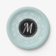 Plaques romantiques en papier avec couronne florale bleu menthe et monogramme personnalisé.