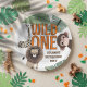 Jolie fête d'anniversaire sauvage avec des animaux de safari mignons pour le premier anniversaire de votre enfant. Doux animaux de safari et verdure forestière pour la célébration du premier anniversaire de votre petit !