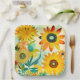 Jaune et turquoise fantaisie folk art fleurs anniversaire, baby shower, fête nuptiale ou plaque de papier de fête de mariage.