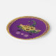 Glitterie or et mauve accents pour cette plaque magique et méowgique d'halloween kitty papeterie. Un chaton sorcier habillé d'un casquette bleu foncé aux accents d'or et de tournesols.