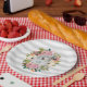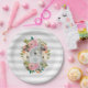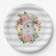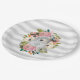 Ces somptueuses plaques en papier présentent un design floral tendance et élégant, dans les tons rose, gris, blanc, bleu, vert et orange. Les rayures gris de l'aquarelle ajoutent un peu de cachet supplémentaire. Personnalisez avec des initiales ou des messages. Nous avons utilisé l'art de www.createthecut.com et IndieGrace Design.
