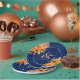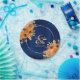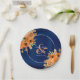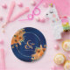 Assiettes En Carton Jolies fleurs orange sur bleu marine