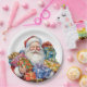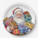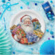 Plaques en papier avec une jolie image de Noël. Un Père Noël traditionnel dans sa tenue rouge classique. Ses bras pleins de cadeaux. Prêt à apporter des cadeaux à tous.