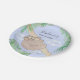 Cette plaque de papier baby shower amusante présente une douce et souriante paresse de bébé suspendue à une branche, feuilles de jungle vert aquarelle, et un arrière - plan bleu. Facile à personnaliser. Il y a des serviettes assorties dans mon magasin. Aquarelle originale © Michele Davies.