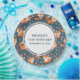 Plaques en papier d'anniversaire avec un motif fait de renards orange mignons et heureux. Arrière - plan vert foncé. Petits champignons et feuilles parsemés. Un cercle blanc superposé avec votre texte à l'intérieur.