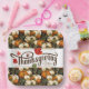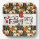 Une Plaque Colorée De Fête De Thanksgiving Carré Conçue Avec Des Citrouilles Blancs Et Oranges Et Des Feuilles D'Automne