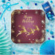 Fête de Noël Golden Reindeers Rouge rose Élégant Plaques en papier. Unique, beau, design élégant. Facile à personnaliser. Le style de police, la taille et les couleurs peuvent être changés. Des éléments correspondants sont disponibles.