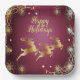 Assiettes En Carton Jour de Noël Golden Reindeers Rouge rose Élégant