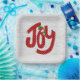 Cher bonhomme de neige et pois rouge et blanc point JOY dans un style de police amusant sur l'arrière - plan de bouleau blanc.