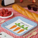 Créez une ambiance festive de printemps ou de vacances de Pâques avec une assiette en papier de style ferme. Cette assiette de dîner présente trois carottes au centre d'un fond blanc crémeux avec une bordure à carreaux bleus. Découvrez d'autres modèles de carottes dans ma collection Cartes et Cadeaux de Printemps.