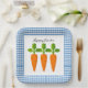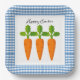 Assiettes En Carton Joyeuses Pâques bleu gingham avec motif carotte