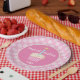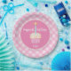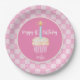 Les assiettes de premier anniversaire de votre petite fille seront sucrées comme son gâteau d'anniversaire avec cette conception de cupcake aquarelle. Un cupcake rose peint à la main avec une bougie bleue est la pièce maîtresse de cette charmante assiette et la bordure en damier lui donne juste la touche de fantaisie pour une fête d'anniversaire délicieuse. Cela fait partie de la collection de Cupcake 1er Anniversaire, chercher à coordonner les invitations et les biens de fête.