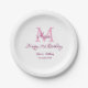 Assiettes En Carton Joyeux 21e Anniversaire rose ajouter nom monogramm