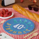 Un design polyvalent et accrocheur de plaque en papier qui présente le texte circulaire "Joyeux anniversaire" en bleu turquoise et jaune, autour d'un numéro d'âge. Modifiez la couleur et l'âge de l'arrière - plan à l'aide du modèle fourni.