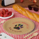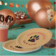 Un empreinte de patte chiot couvert de confettis et de ruisseaux. Idées cadeaux pour chiens célébrant l'anniversaire. Textes, images et couleurs personnalisables.