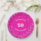 Un design amusant inspiré de la pierre vintage de Terrazzo, une version moderne colorée et lumineuse à dominante rose vif et si facile à customiser avec un nom personnel et l'âge, Joyeux anniversaire!