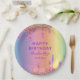 Votre fête d'anniversaire brillera avec cette étonnante plaque colorée d'arc-en-ciel. Doté d'une surface métallique élégante ornée de gouttes de parties scintillant arc-en-ciel scintillantes, ce plateau est parfait pour tout âge. L'élégant design "Happy Birthday" peut être customisé avec votre nom et votre date de naissance, ce qui en fait un ajout unique et personnel à votre décor de fête. Parfait pour ajouter une touche de scintilité, ce plat met en valeur toute célébration dans une ambiance chic et festive.