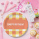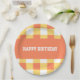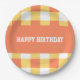 Assiettes En Carton Joyeux anniversaire en vichy jaune