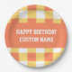 Assiettes En Carton Joyeux anniversaire en vichy jaune