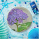 Ces plaques de papier d'anniversaire ont une belle image d'une floraison de lavande hydrangée.
